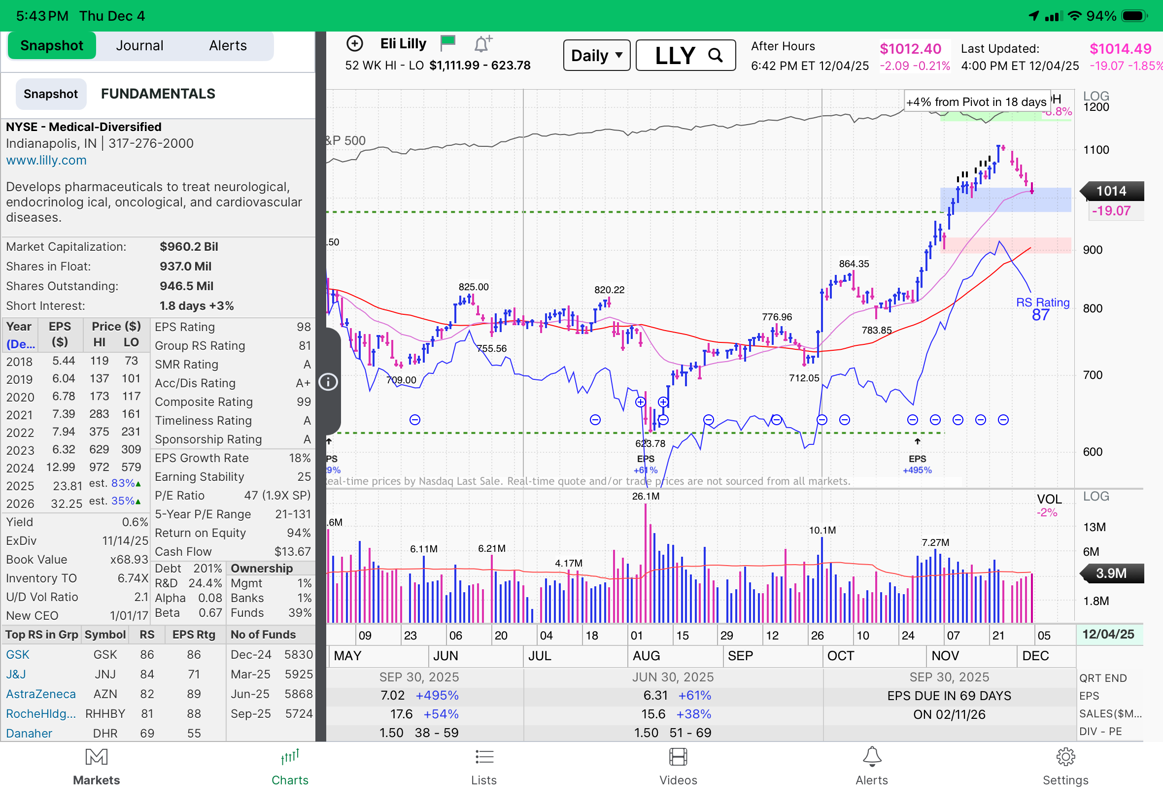 Ely Lilly, A leading drug company, if you missed from an earlier entry point, price is pulling back on lower volume….