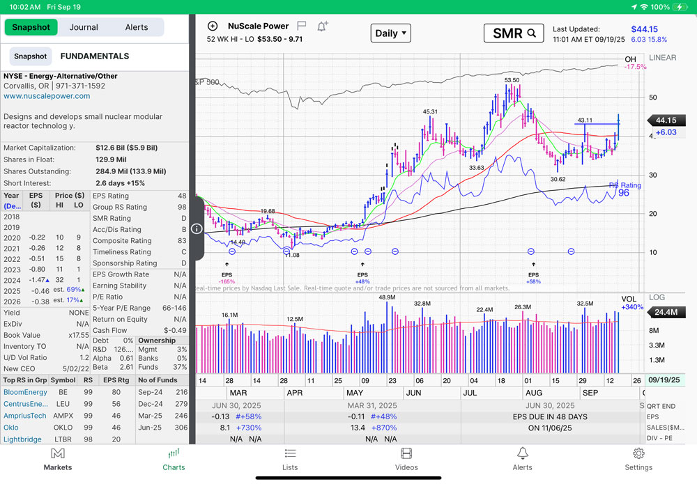 The SPY(500 largest companies). At top of range…poised to breakout..