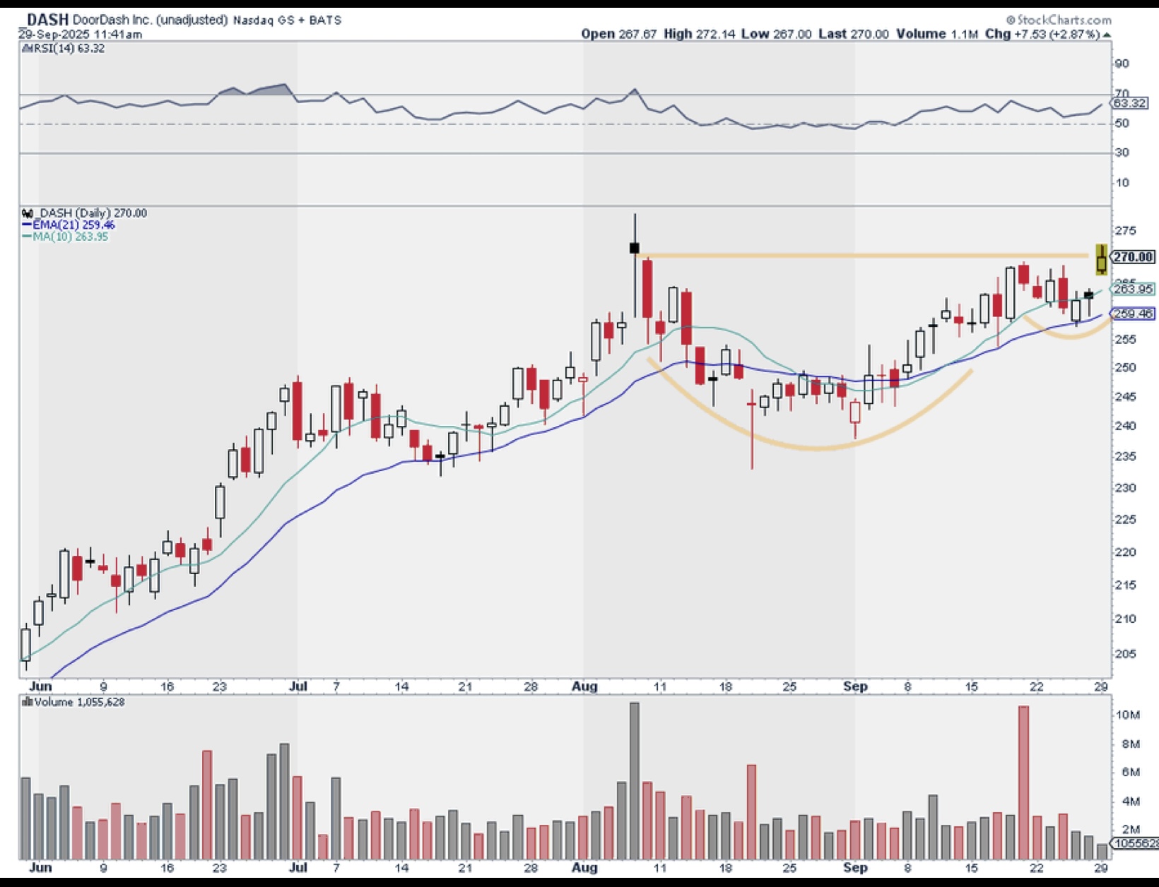 ok to start a position here around 267….with A 5% stop..