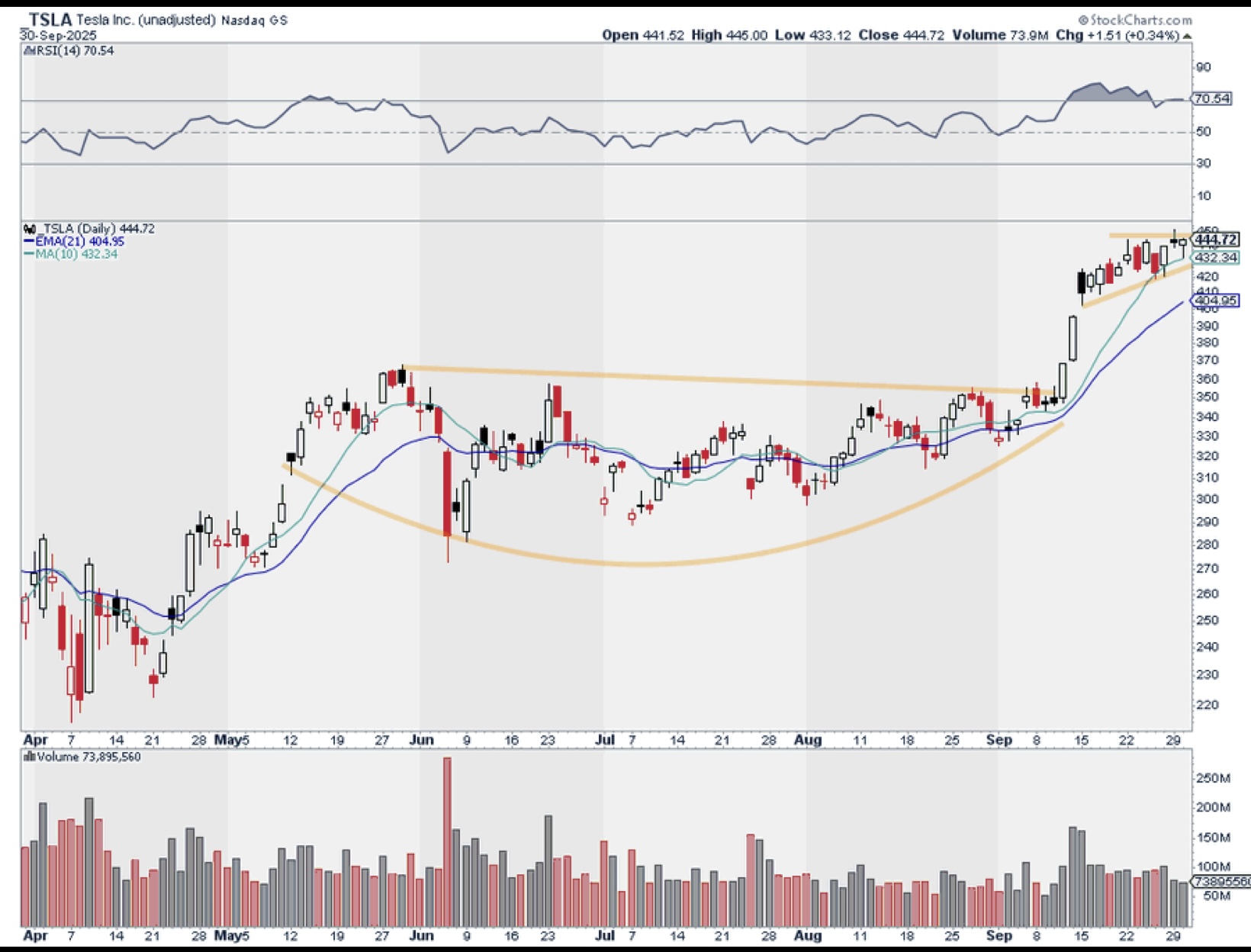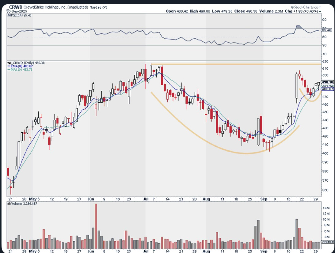 The QQQ on a Monthly chart, forming a base or what we call a cup and handle.