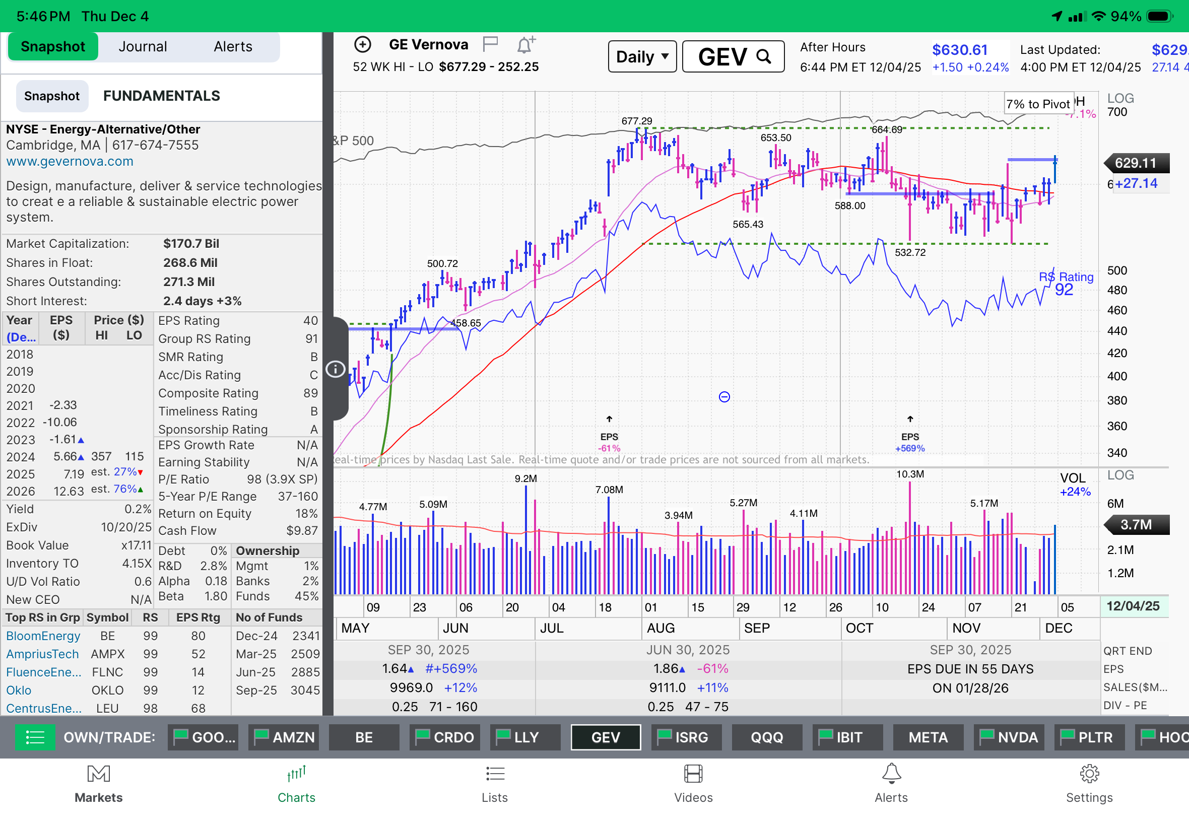 GEV, an energy/ power company, that should benefit from our need to power A.I.  looks good to start a position.